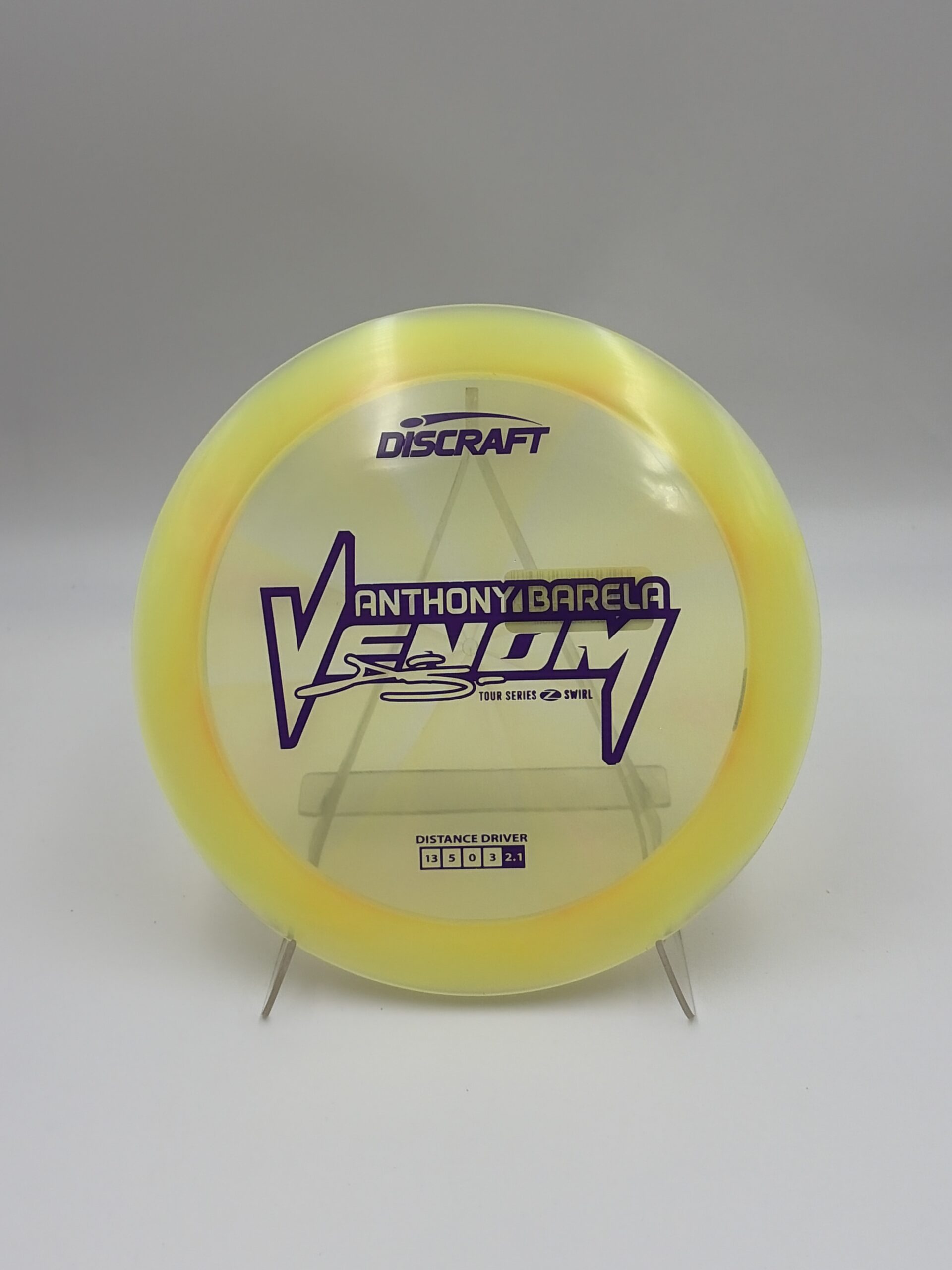 Anthony Barela’s 2025 Tour Series Venom is a fast, overstable driver built for elite power. The Z Swirl plastic softens the grip just enough for control while maintaining the Venom’s signature overstability. Designed for huge hyzers, force-over flexes, and skip shots, this disc is built to help you reach your full distance potential.