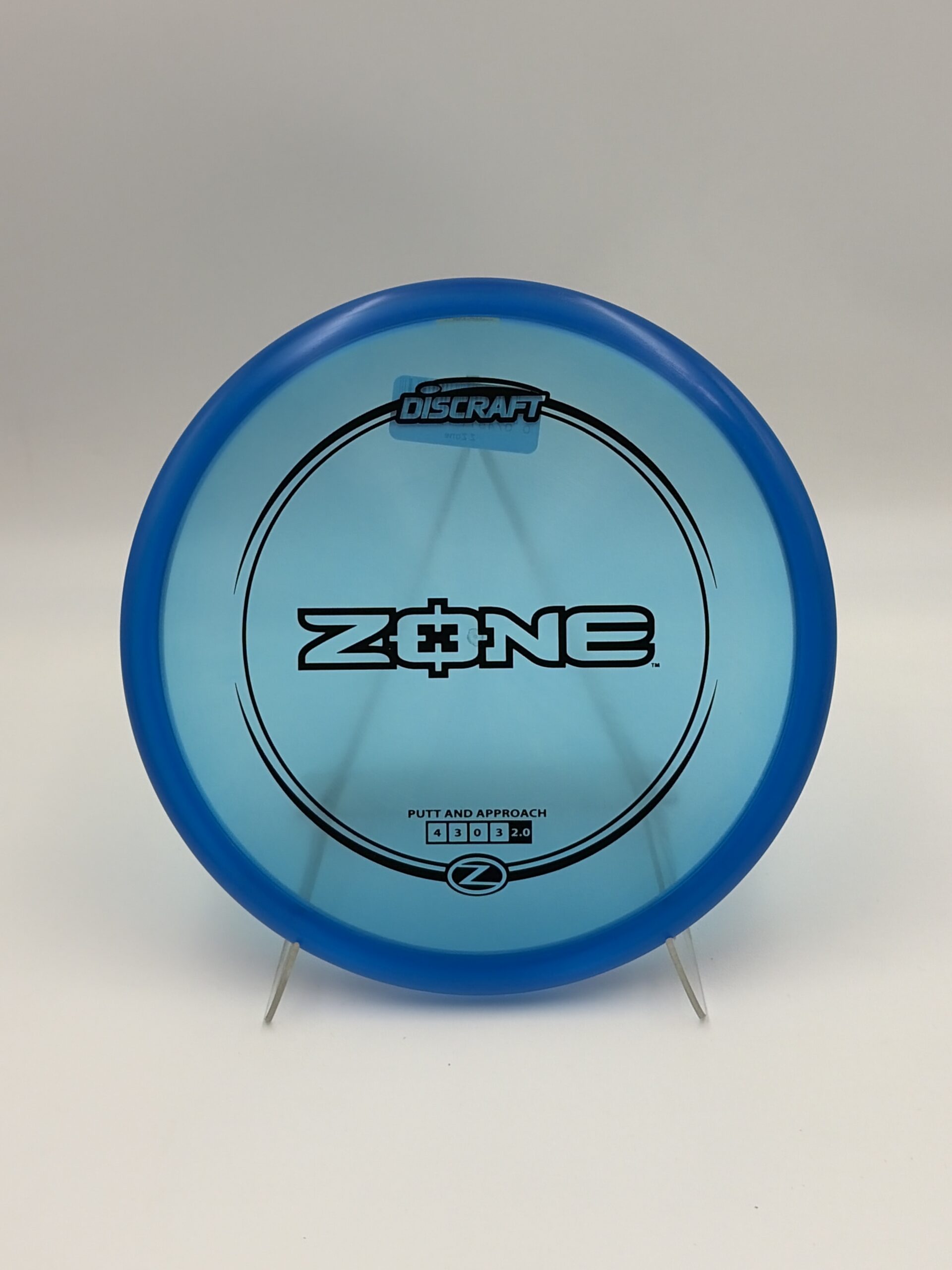 The Zone in Z Line plastic is a very stable and consistent disc, great for putts and approach shots, especially in challenging conditions. It has a flat profile and a left-turning flight, making it perfect for headwind shots, throwing around obstacles, and possibly the best forehand approach disc. Due to its durability, it can handle a lot of power, which makes it popular among advanced players.